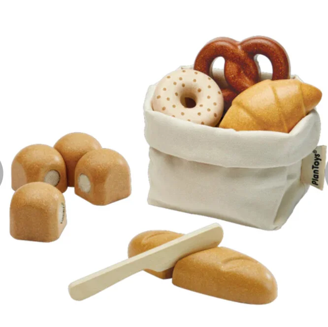 Are you hosting family brunch, or are you preparing for a picnic in the park? Bring the Bread Set along with you to complete your meal! This playset includes a bagel, 4 detachable rolls, a pretzel, croissant, cuttable baguette, knife and fabric bag for storage.